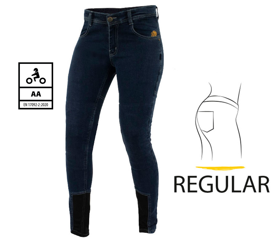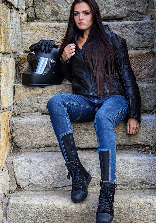 Any girl who likes to ride a bike, or just rides with her partner in the back seat, likes to dress comfortably, in style and with all the safety features possible. ALLSHAPE jeans are an exciting addition to variety or riding garments Trilobite has to offer. These jeans were created with focus on the body shapes of the ladies, especially the shape of their bums. Not all of them are the same, but every of them can look great! There are three fitting shapes that express the curves and bring out the best appearance. The pants are made with 5% of stretch material, so they feel very comfortable. Protection is enhanced by aramid fibers at knee and back and CE level 2 knee protectors are included. Furthermore, there are pockets for hip protectors which allows you to add more safety features to your pants. The jeans have two hand pockets in front and two pockets in back.