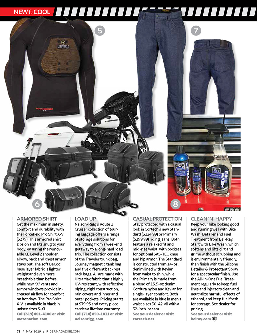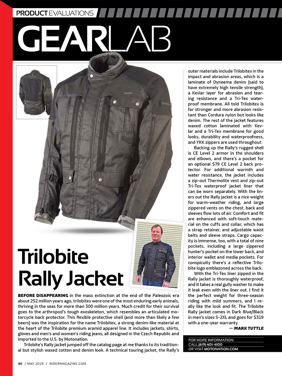 Trilobite & Forcefield Love in May issue of Rider Magazine